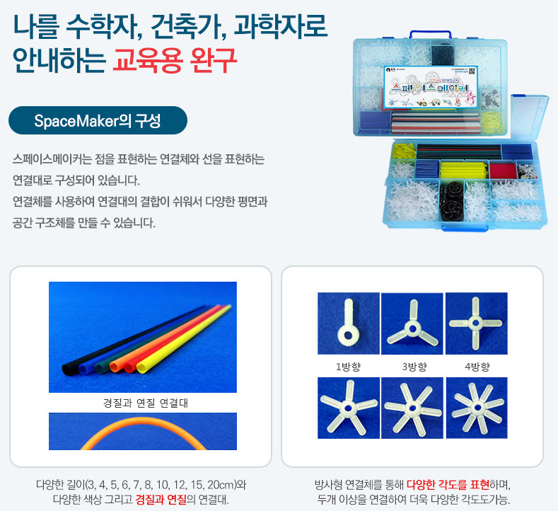 SPACE MAKER is the STEAM Education kits which can rotate the all-around direction with rotational elbow connectors , while the old fashioned education kit is just assemble the blocks to make the structure.
